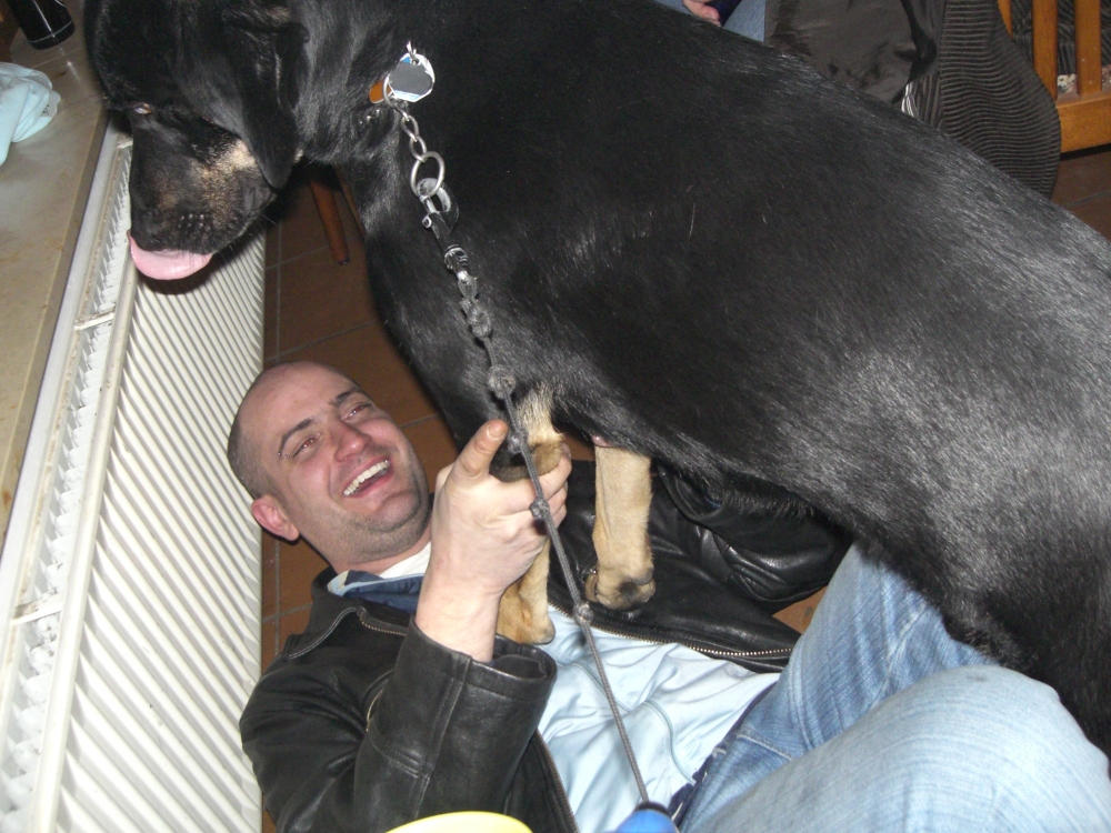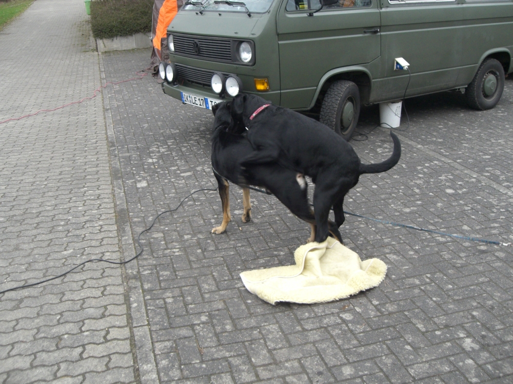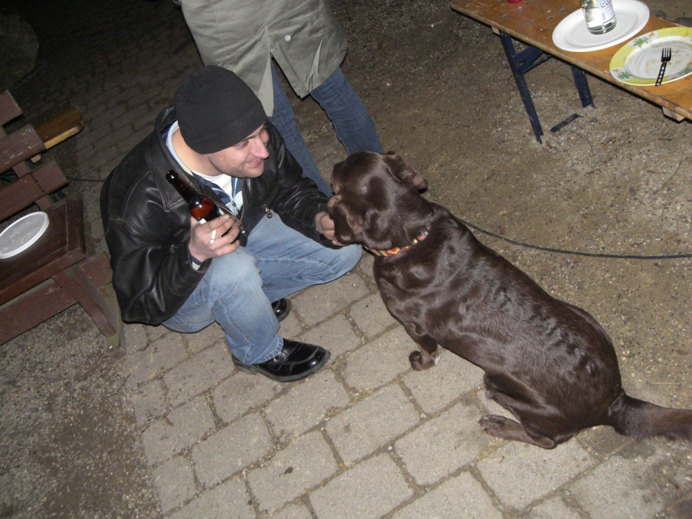 Böse Zungen behaupten, Olibär musste sich ein Schnitzel umhängen, damit wenigstens der Hund mit ihm spielt!