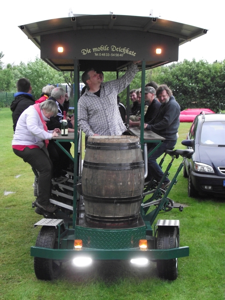 Freitag Abend: das Bier-Fahrrad der Deichkate wird angeliefert!