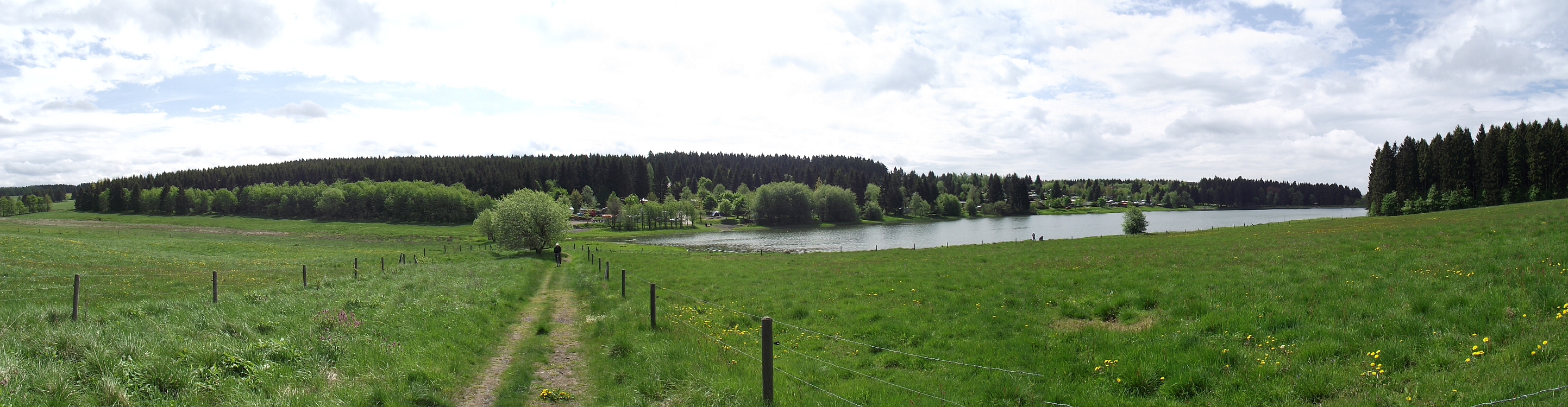 Blick auf Campingplatz und See vom gegenüberliegenden Hügel!